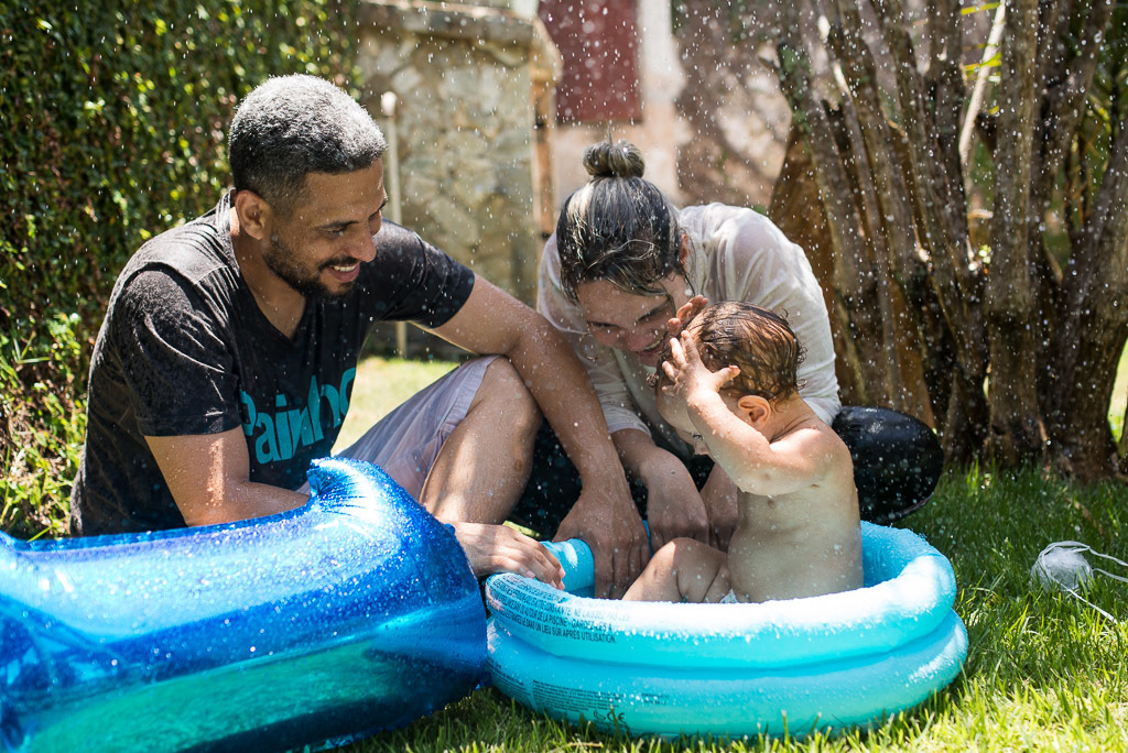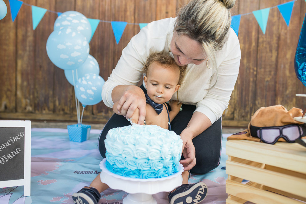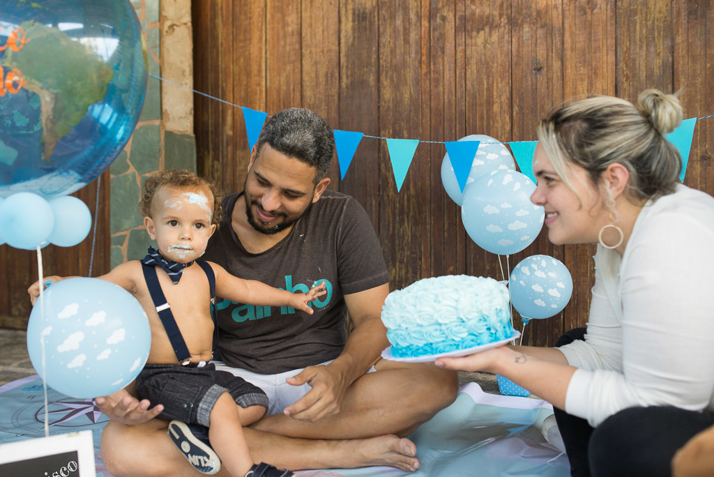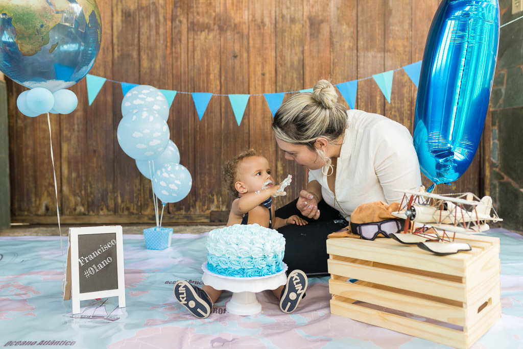 Francisco no início ficou meio desconfiado e não largava da mamãe,mas depois acabou provando o bolo e fazendo uma baguncinha gostosa. Acho que o mais gostoso foi limpar toda a sujeira depois com um gostoso banho de mangueira, e todo mundo tomou banho junto. Foi muito divertido! adorei fazer esse ensaio dessa fase tão importante do crescimento do Francisco.